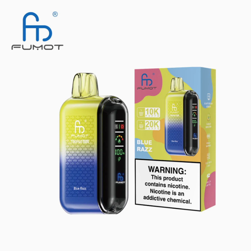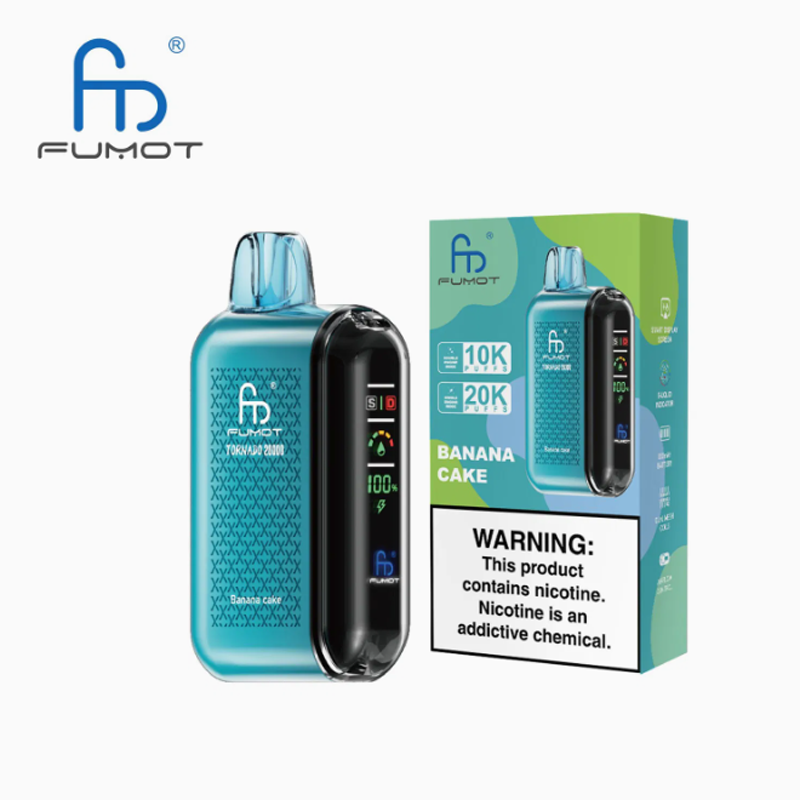 Fumot Tornado 20000 puffs Disposable Vape is a rechargeable disposable vape device comes with battery and ejuice level display. It contains 2/5% nicotine salt e-juice,vape up to 20000 puffs. There are 20 flavors for you to choose.